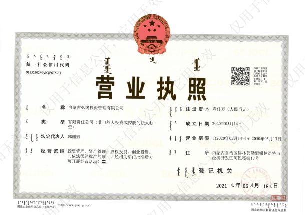 內蒙古弘錫投資管理有限公司由錫林郭勒盟城鄉(xiāng)投資集團有限公司成立于2020年5月14日,注冊本金1000萬元,經(jīng)營范圍為投資管理、資產(chǎn)管理;股權投資、創(chuàng)業(yè)投資。公司下設財務部、資金管理部、項目部和綜合辦公室,配備了大量房地產(chǎn)、財稅、建筑等專業(yè)人才。